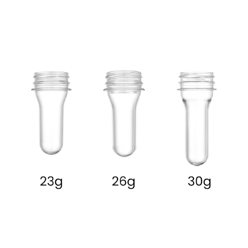 มิติที่แม่นยำ: preforms ของเราได้รับการออกแบบด้วยขนาดที่แน่นอนเพื่อให้แน่ใจว่าเข้ากันได้กับระบบเติมและการปรับแต่งต่างๆ สิ่งนี้จะช่วยลดความเสี่ยงของปัญหาคอขวดและทำให้มั่นใจได้ถึงความมั่นคงโดยรวมของผลิตภัณฑ์สำเร็จรูป